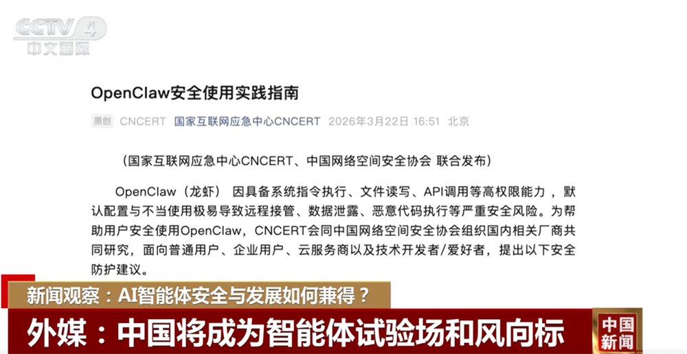 开源智能体“养龙虾”热潮持续,今年以来,AI技术再次迎来爆发性突破,OpenClaw引发的“养龙虾”风潮席卷全球,从技术到应用场景再到市场,各地纷纷布局OpenClaw智能体赛道,相关的安全指南也同步密集发布,专家分析AI智能体安全与发展如何兼得策略,外媒表示“养龙虾”在中国用户中引发了试验热潮,中国将成为智能体试验场和风向标。